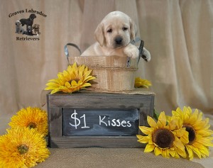 All of Graves labrador retriever pups are socialized with children of all ages. They are also raised going outside through a doggy door. We do this for many reasons. Above all it is for their health. Dogs do NOT live by years as humans do, they live by the seasons. Raised out in the dirt also creates tight paws. As well it makes it easier to potty train in their new homes. They are exposed to loud noises as well as other noises.